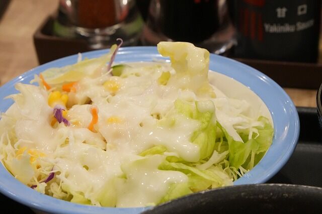 わんぽは松屋さんのサラダと、